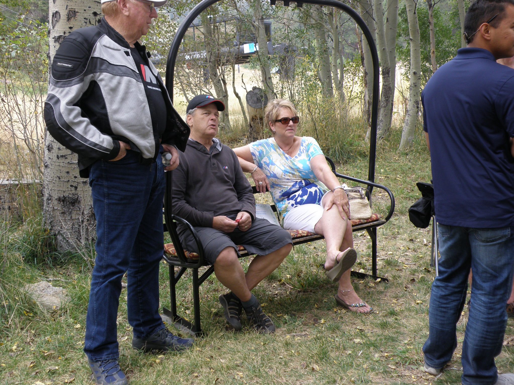 There were great raffle prizes given out every 15 minutes. De Sharp will look great in the pink Jaguar T Shirt he won. He gave away the Roller Kingdom tickets he won. It would have been nice to see him and Joyce at the rink. My wife would like to thank whoever left the Land Rover key chain on her windshield. Just what she always wanted (not). Last but not least the event ended with a live auction. I wonder how Jane Warner likes the ski lift chair that Jeff was high bidder on. I heard it looks great in front of the picture window. As could be expected, there was a little sour grapes from the Mustang people. One lady passed the Huntoon’s and said one of our members brought eight cars. Not true but maybe next year! Members did man their cell phones and got members to come who had no plans on attending the event. Lex Anastassatos was on Reserve duty for the weekend, and had brought his car the night before. We knew we needed more cars so he enlisted the help of his boss and brought his X5! I drove Jim Goodfellow home so he could bring another car to the event. Russ Huntoon strode in on his BMW motorcycle while Cheri followed in her daughter’s BMW. Carmina stayed home and packed for their upcoming move but did let Ron Nicasio out so he could participate.