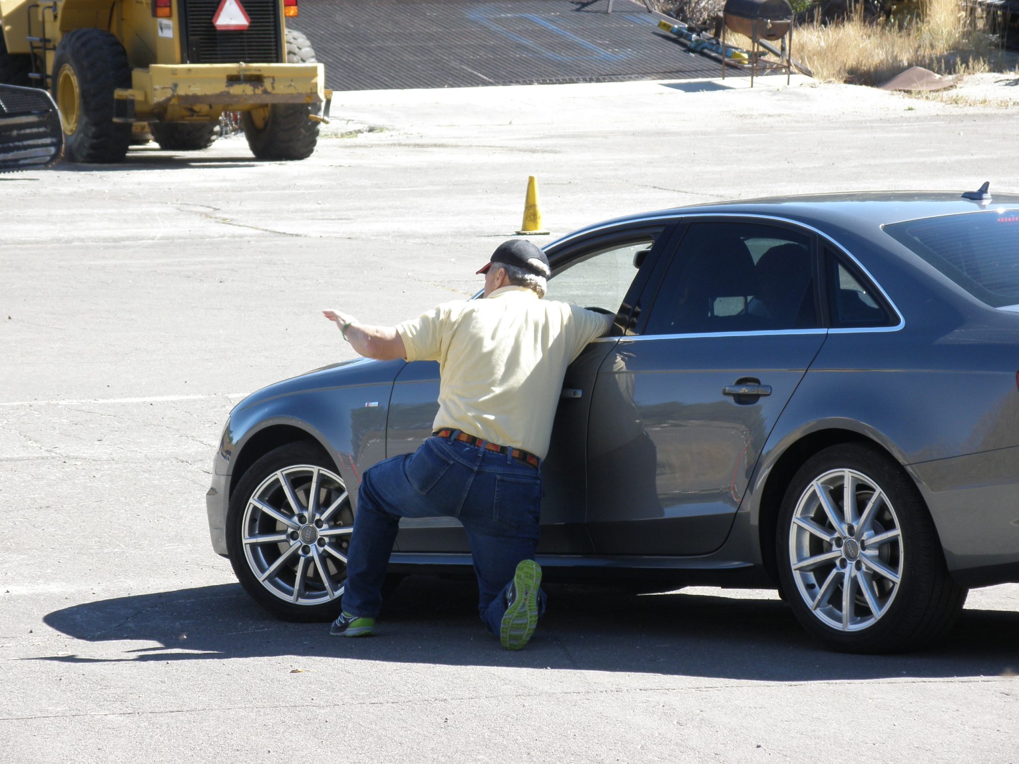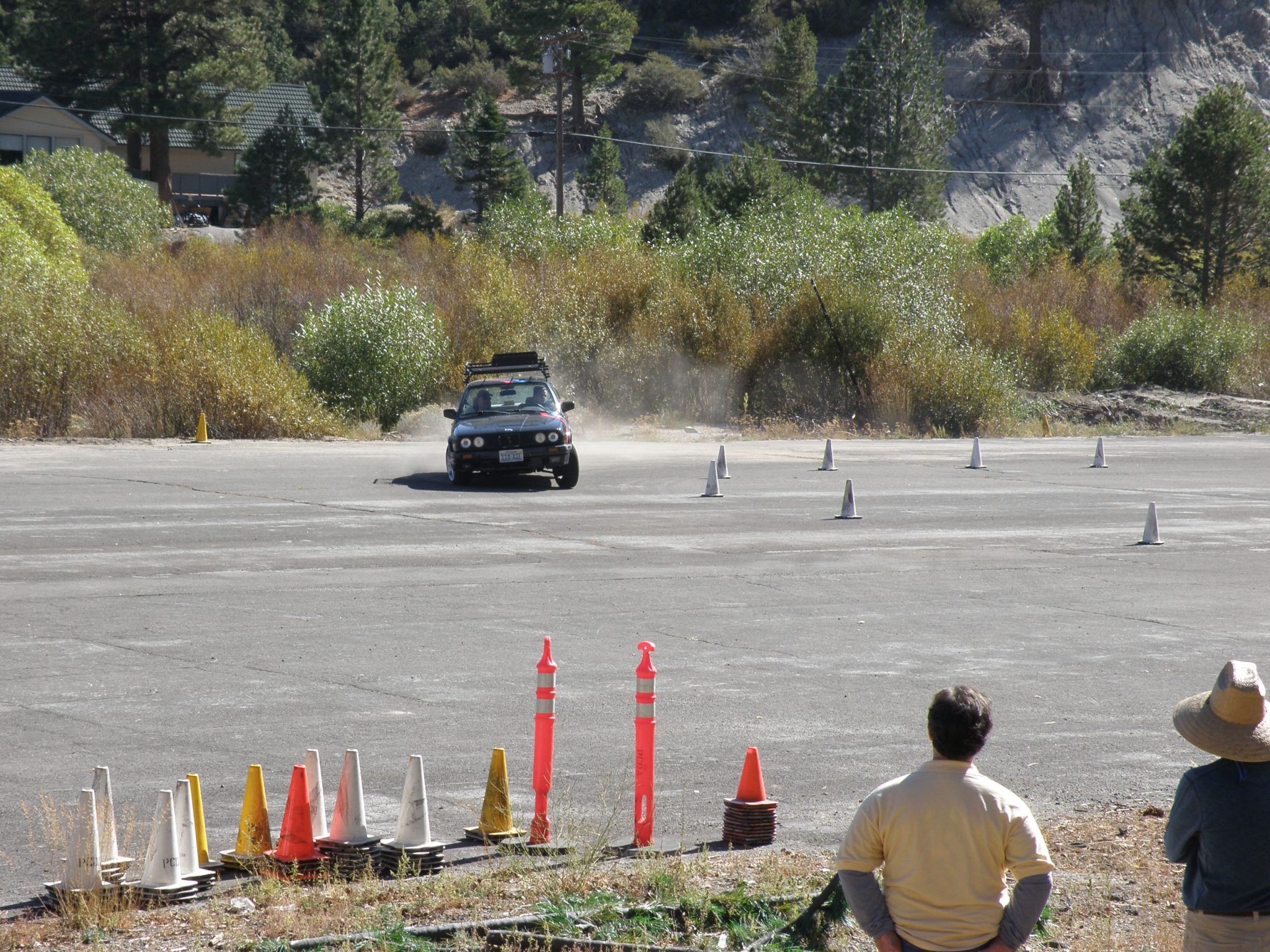 However, this year… we had an incident. MOST fortunately, nobody was injured, but that might possibly have been due to divine intervention. Once the (air bag) dust settled, it was clear that things could have been much more serious. Okay, we actually did plan and brief for the possibility of the exact incident that occurred. As an aside, had the exact same scenario unfolded @ the larger Mt. Rose venue, the car would have impacted a wall of very large boulders instead of the dirt bank that it “flew” up @ Sky Tavern. The result @ Mt. Rose would surely not have come out well… at all.